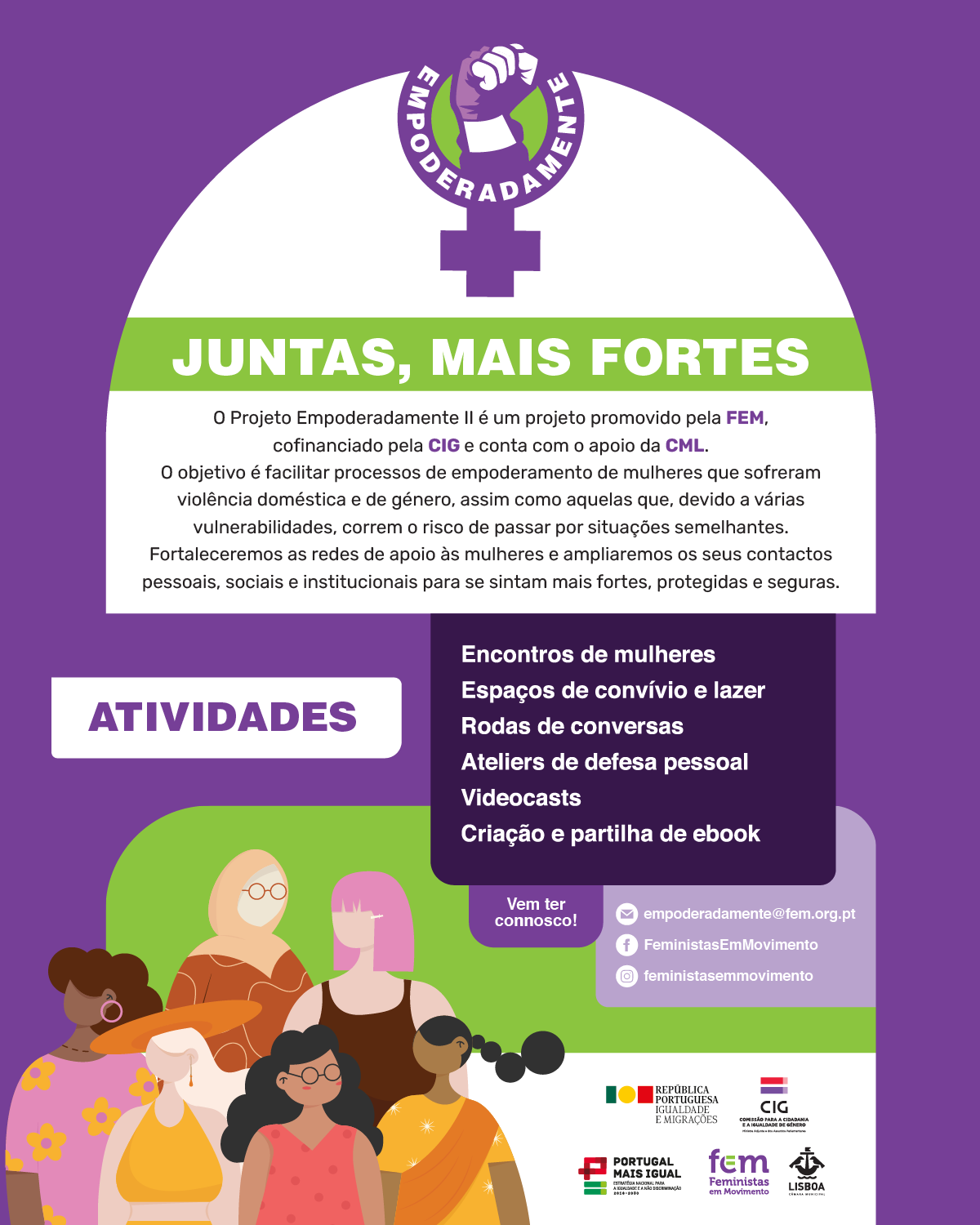 O Projeto Empoderadamente II é um projeto promovido pela FEM, cofinanciado pela CIG e conta com o apoio da CML.