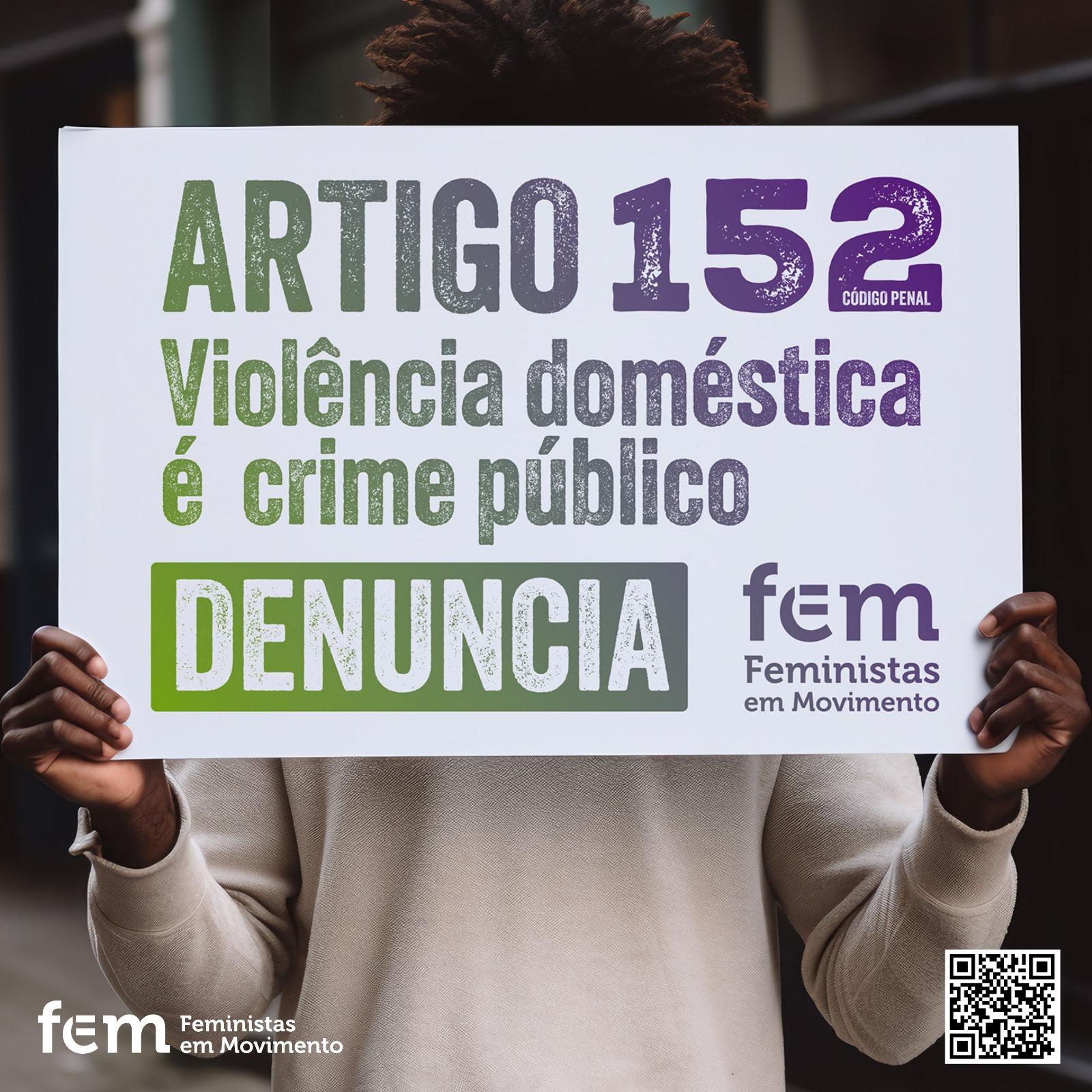 A FEM – Feministas em Movimento, por ocasião do Dia Internacional pela Eliminação da Violência Contra as Mulheres, apresenta esta campanha que visa lembrar, a todos e a todas, a quem sofre a violência diretamente, mas também a todos/as os/as cidadãos e cidadãs, que o Artigo 152.º do Código Penal serve para defender as vítimas, para defender os Direitos Humanos e construir uma sociedade mais justa, sem medo, em Liberdade e Igualdade.